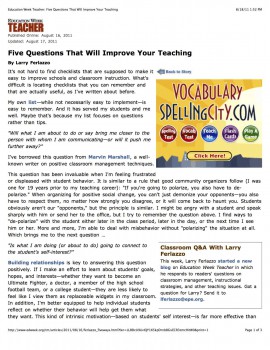Teacher Larry Ferlazzo shares his list of questions he uses to self-examine and improve his teaching: