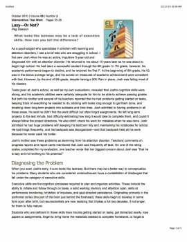 Psychologist Peg Dawson suggests that children who struggle in school despite strong cognitive skills may be deficit in executive skills, not lazy. She suggests a number of strategies to help students develop executive skills.
