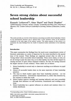 The authors provide an overview of literature concerning school leadership and make seven claims about successful school leadership: