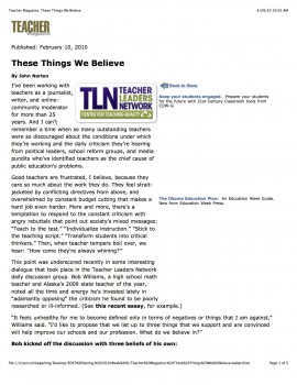 John Norton shares an activity that took place in a Teacher Leaders Network daily discussion group. Teachers were asked to share three things they support and believe would help improve schools and the teaching profession.